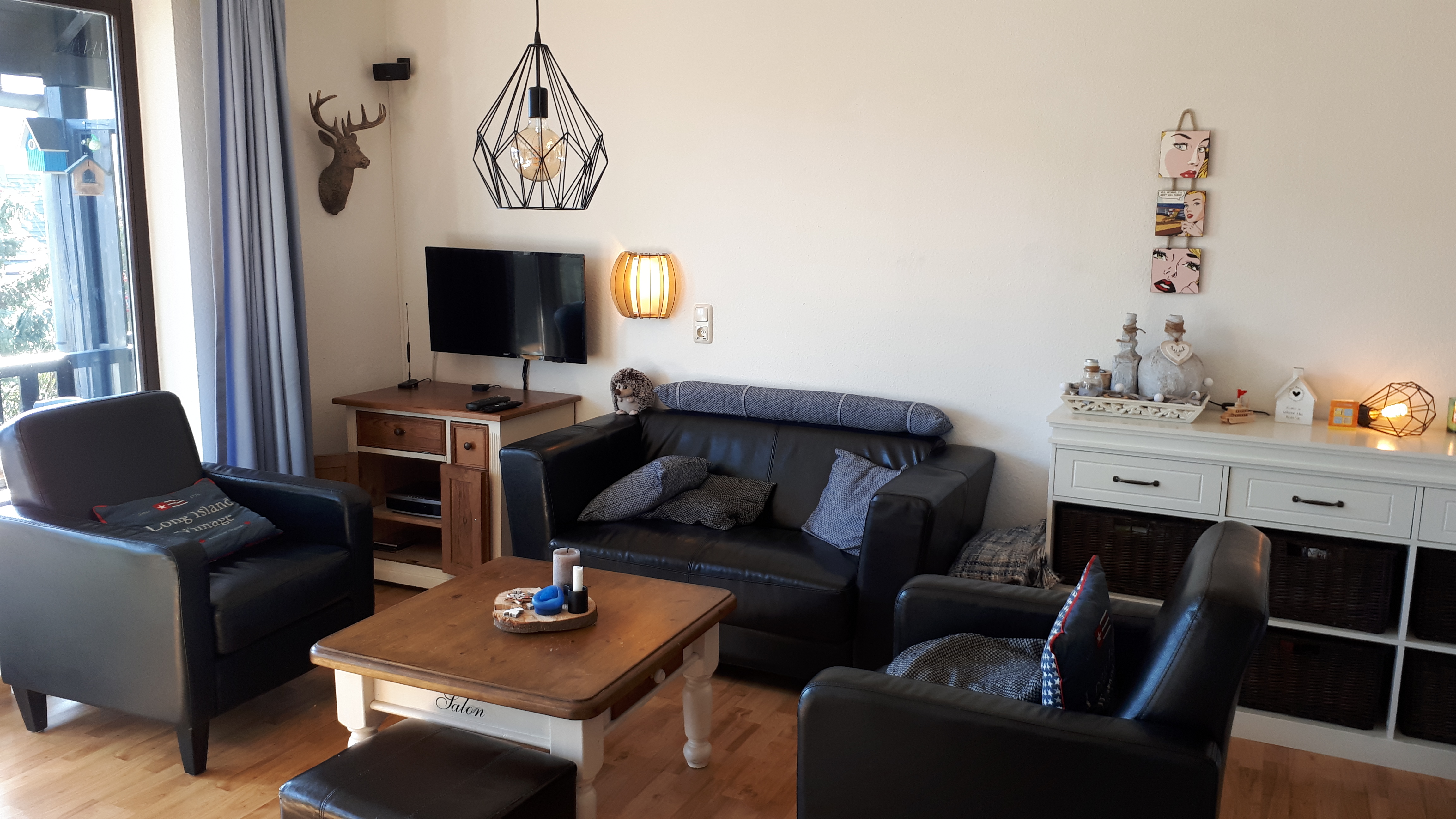 Op de bovenste woonlaag bevindt zich de entree, de woonkamer en een groot en zonnig balkon. De open keuken is uitgerust met een elektrische kookplaat, ruime oven, vaatwasmachine, airfryer, koffiezetapparaat, senseo en magnetron. De televisie ontvangt alle Nederlandse zenders. Tevens zijn een radio/CD-speler en een DVD-speler aanwezig. Er is (nog) geen wifi.